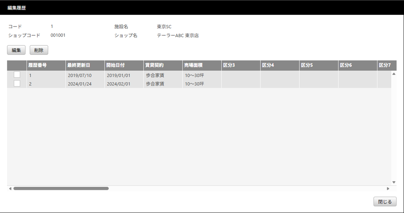 ショップ情報のうち履歴を保持する項目について、その編集履歴を確認・修正・削除することが可能です。
